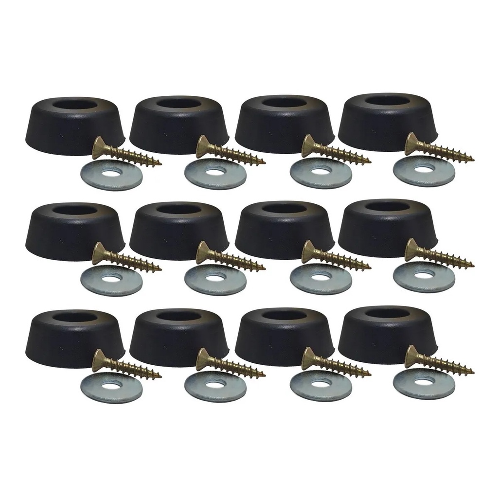 Pé De Borracha Com Arruela E Parafuso (kit Com 12 Peças)