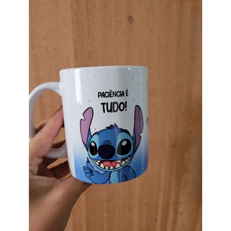 Caneca porcelana. 325ml engraçada stich, paciência é tudo o que eu não tenho...