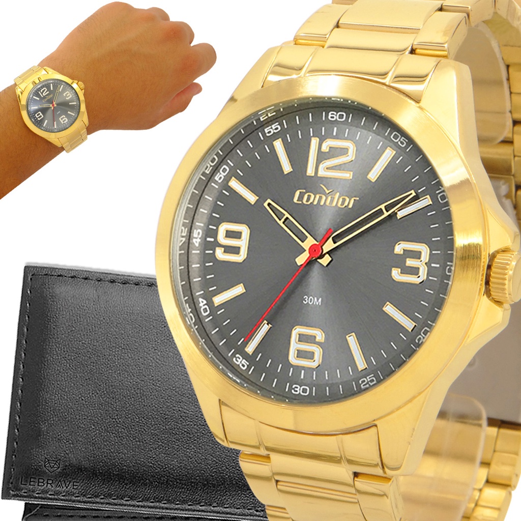 Relógio Condor Masculino Dourado Prova d'água com 1 ano de garantia