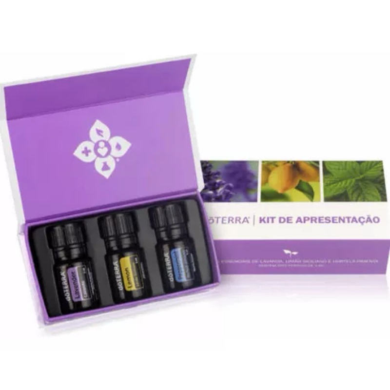 Kit de apresentação doterra com óleo essencial lavanda hortelã pimenta limão siciliano
