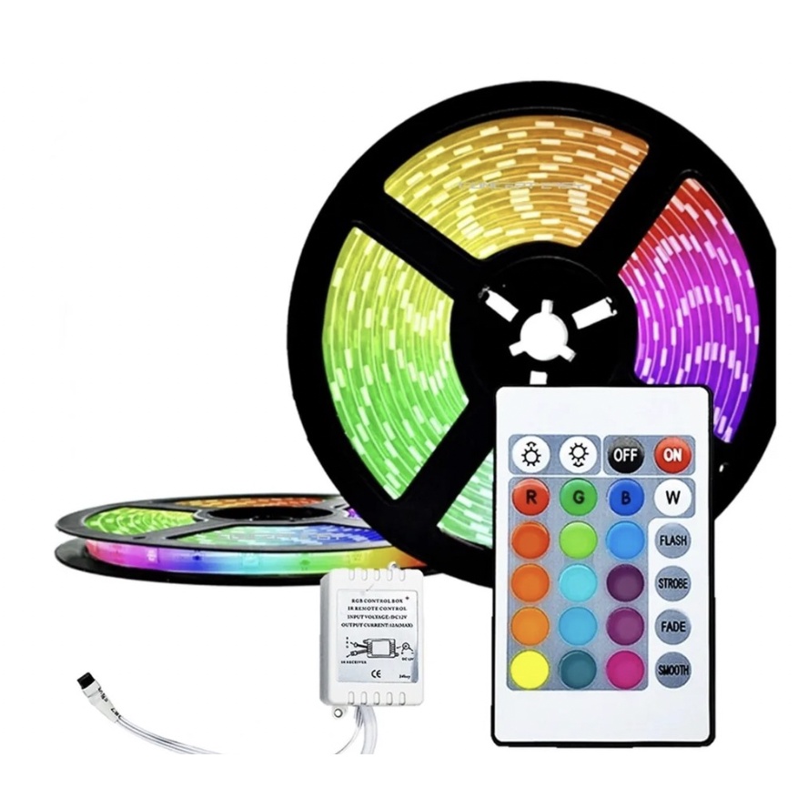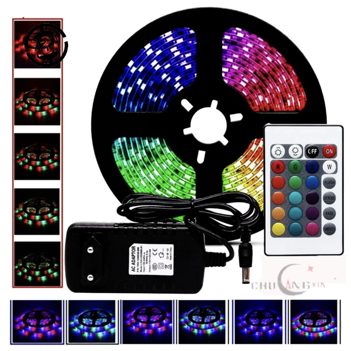 Fita led com controle e fonte led rgb 5050 ip65 5 metros