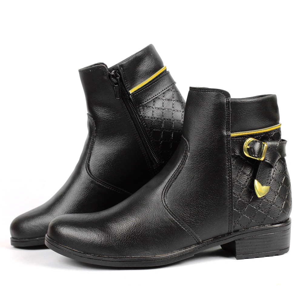 Bota Coturno Ziper Lateral Feminino Cano Curto E Salto Baixo Bico Redondo