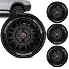 Jogo Calota Uno Fire Universal Fiat Aro 13 Preto Brilhante