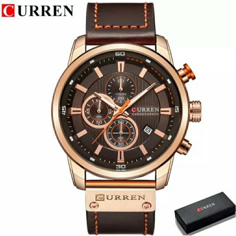 Relógio Masculino Curren 8291 Cronógrafo Funcional Pulseira de Couro de Pulso Original