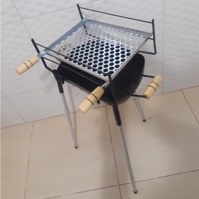 Churrasqueira a Carvão Inox 430 Brilhante Completa Com Grelha Desmontável Portátil Prática Para Casa Camping Pesca Apartamento