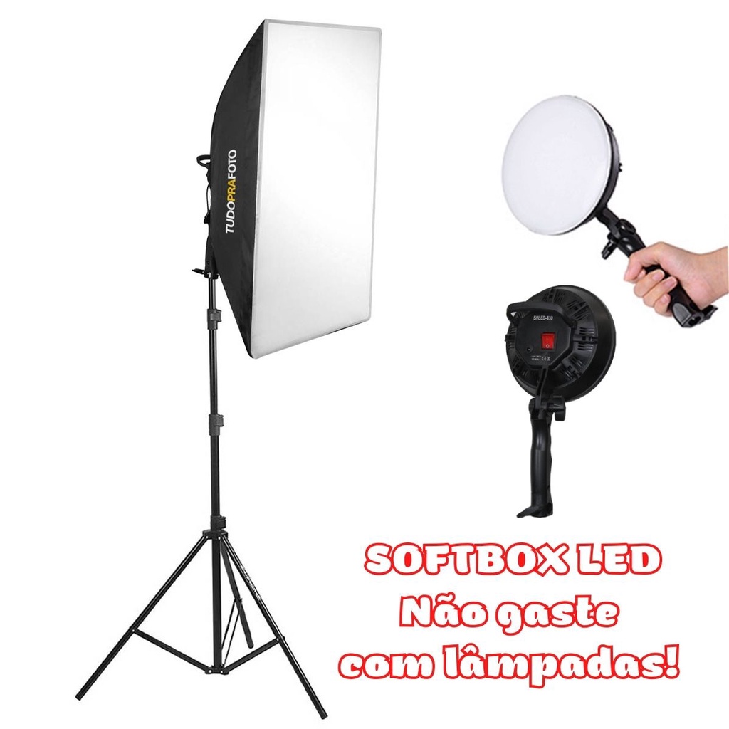 Kit Estudio Iluminador de LED SHLED-004 Bivolt, com Softbox 50x70 e Tripé e Luz de LED