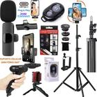 Kit Microfone Lapela Sem Fio IPhone e Android + Tripé Selfie Bastão De Celular