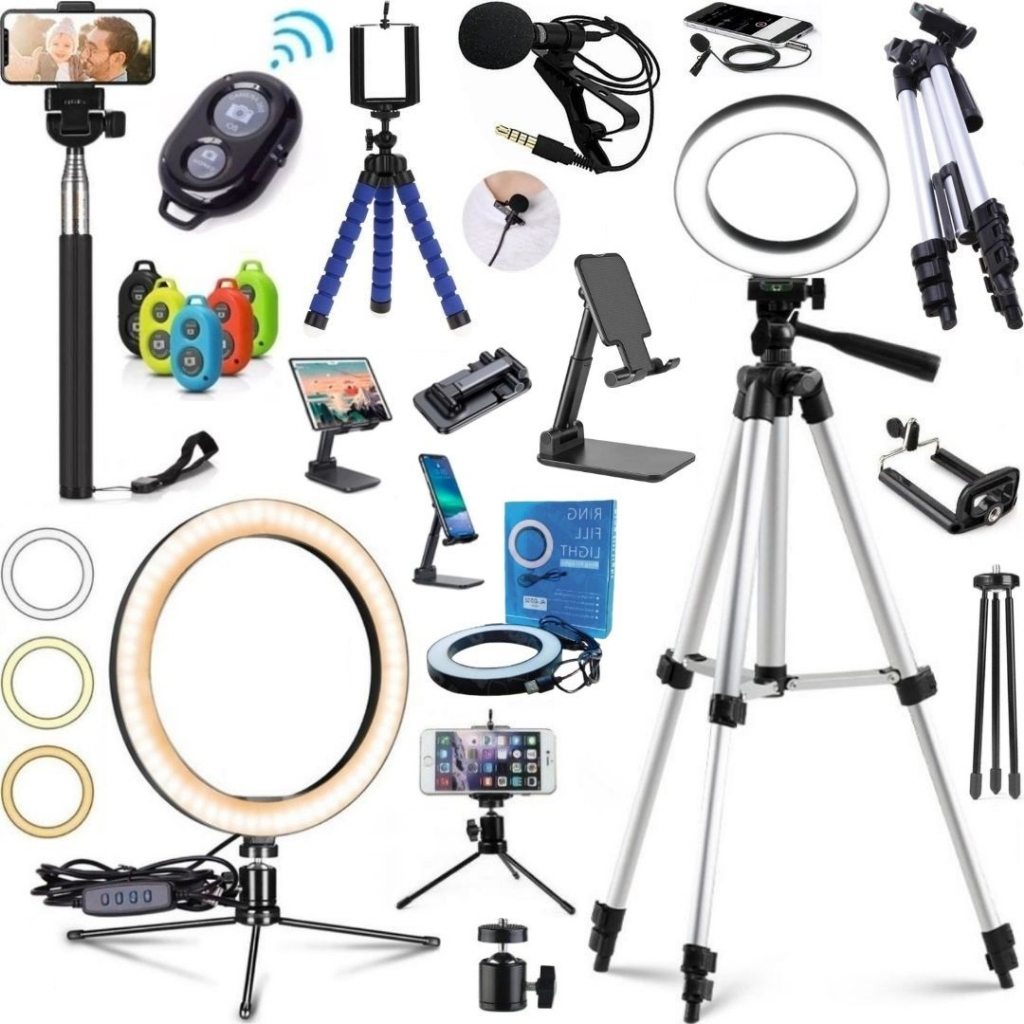 Kit Filmagem No Celular Luz Hing Light Tripé Microfone Vídeo Acessórios