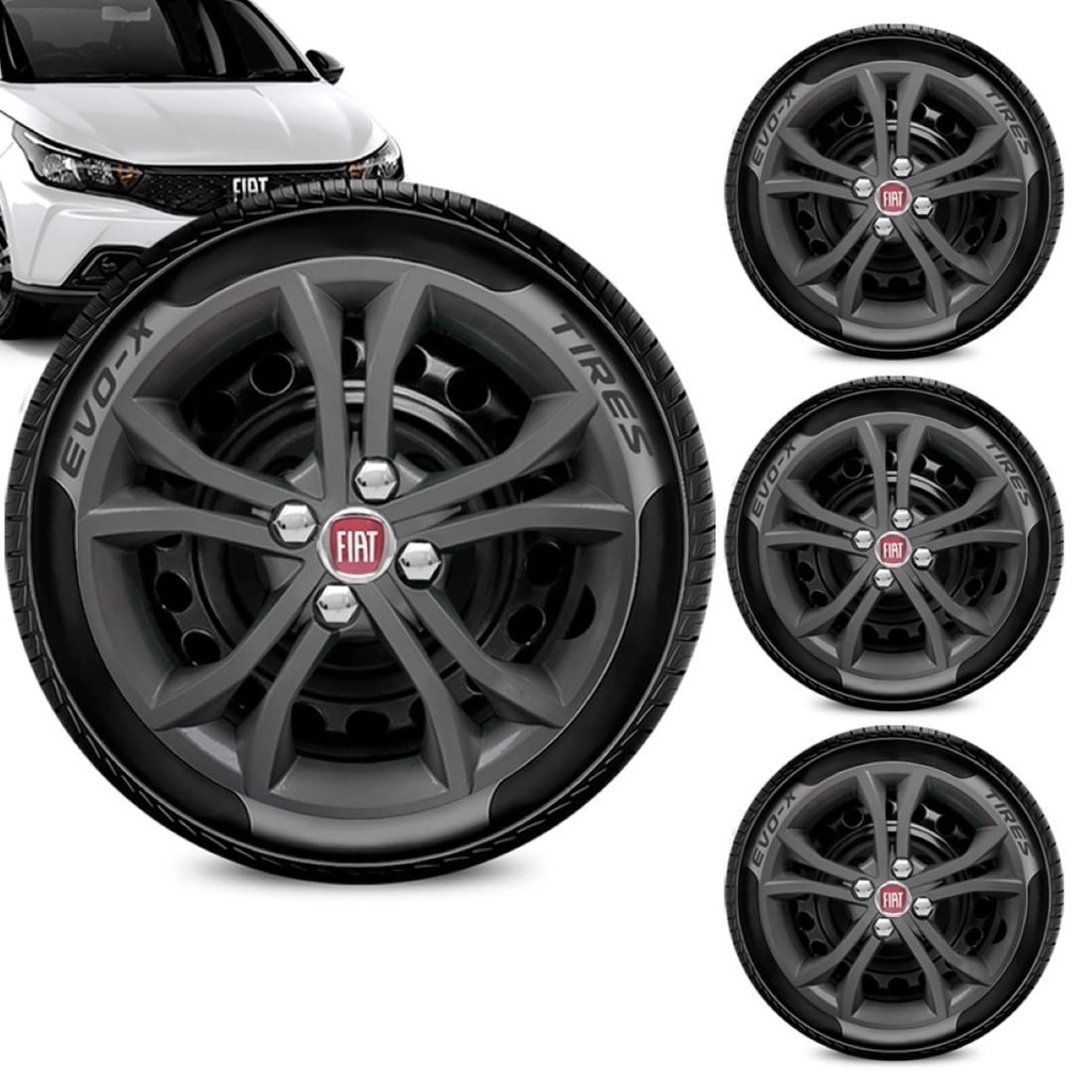 Jogo 4 Calota Argo Modelo Universal Fiat Aro 15 Grafite Bri
