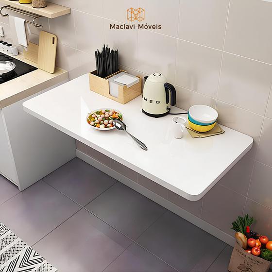 Mesa Dobrável Retrátil de Parede 80x40 Branca p/ Cozinha - Sala - Quarto