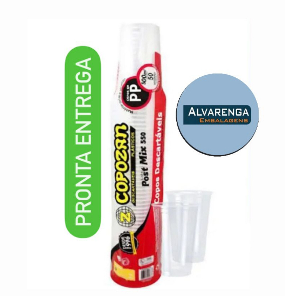 Copo Descartável Liso Transparente Para Açaí Chopp PP 300ml Copozan 50un