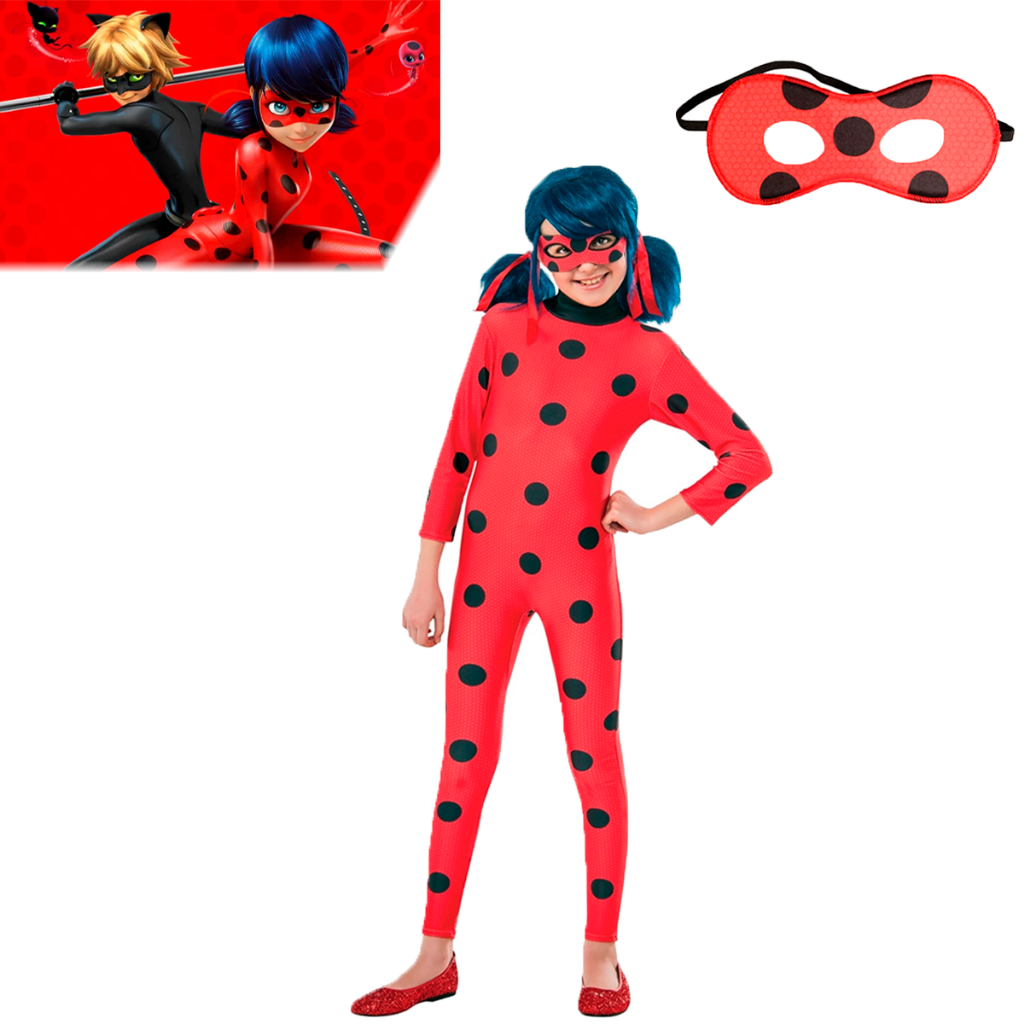 Fantasia Infantil Ladybug Miraculous com Máscara Macacão Roupa Temática Festa Aniversário