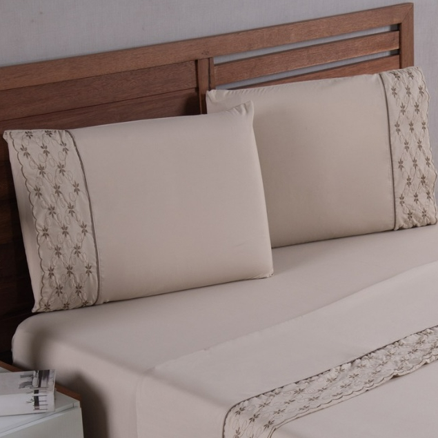 JOGO DE LENÇOL CASAL KING 3 PEÇAS COM ELÁSTICO E FRONHAS BORDADAS