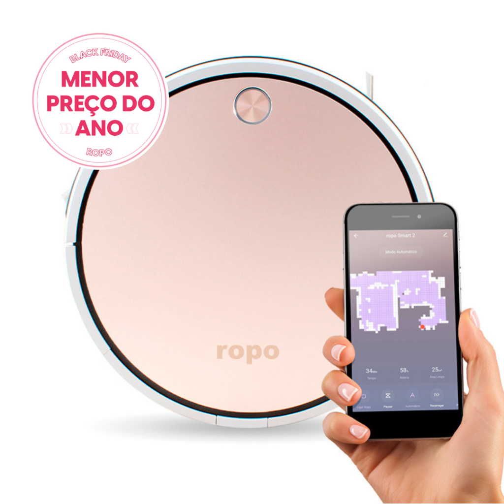 Robô Aspirador de Pó Ropo Smart 2 Modo Turbo Mapeamento Limpeza Programavel Filtragem Tripla Varre Aspira Passa Pano