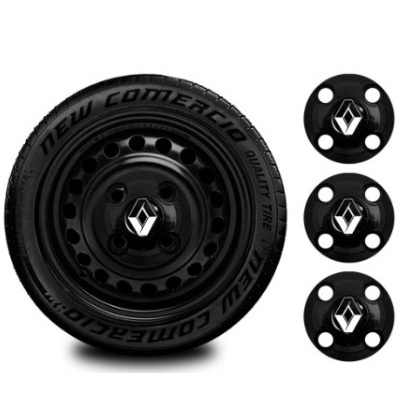 Kit 4 Calota Central Renault Roda Ferro Aro 13 14 15 Universal
