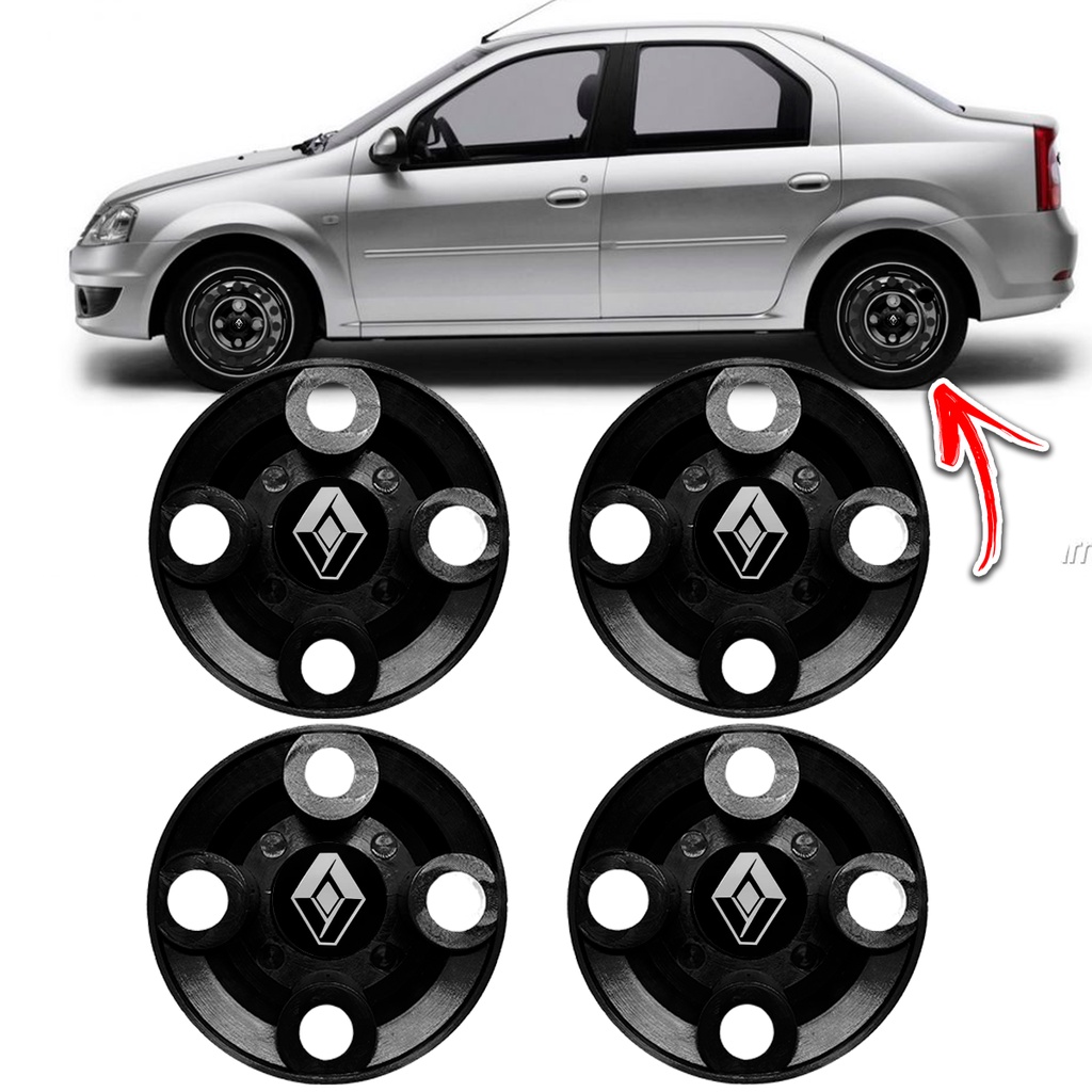 Kit 4 Calotinha Central Renault Logan Sandero Clio Kangoo Aro 13 14 15