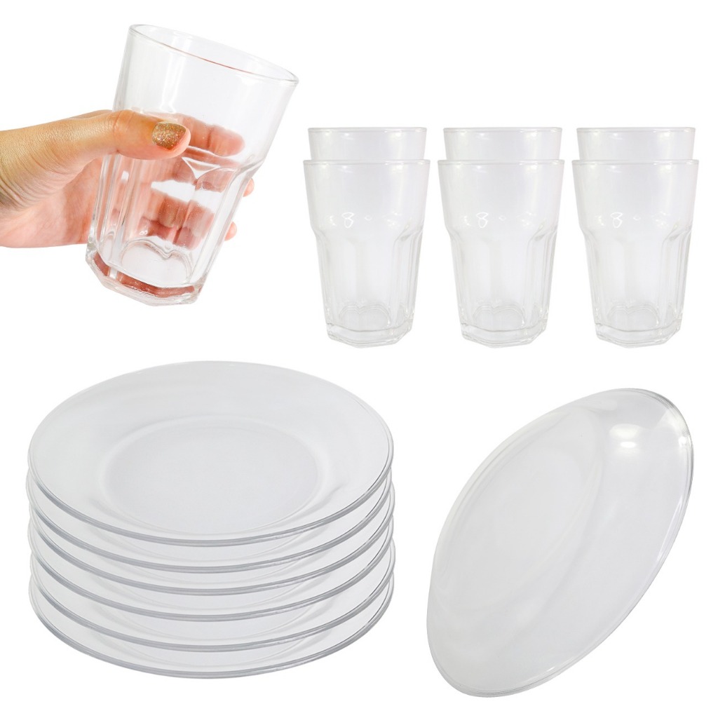 Kit 06 Pratos Vidro Liso Fundo Copo de Vidro- 350ml Vitaminas ou Smoothie