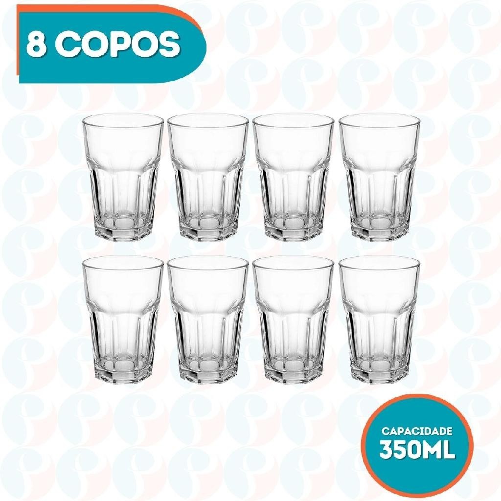 Kit 8 Copo de Vidro resistente 350ml transparente Vitaminas