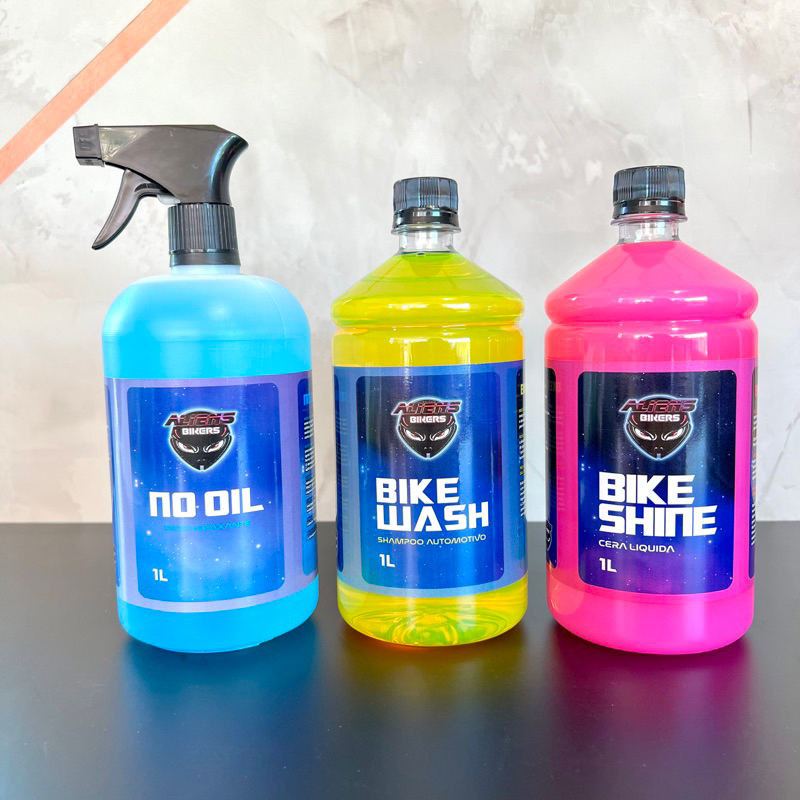 Kit 3 Produtos Aliens Bikers - No Oil - Bike Wash - Bike Shine