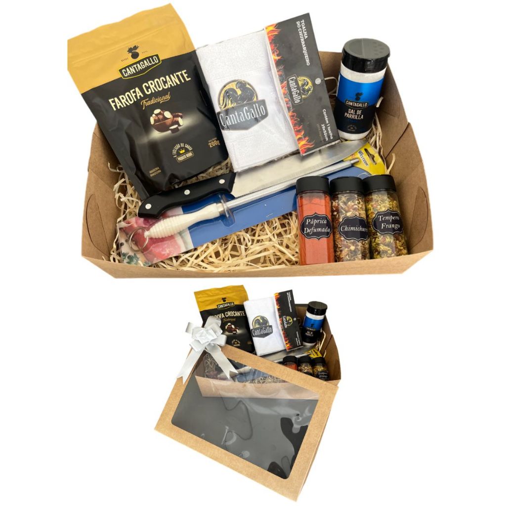 Kit Churrasco Presente com 8 Peças - Temperos + Sal + Farofa + Faca + Cahira + Toalha