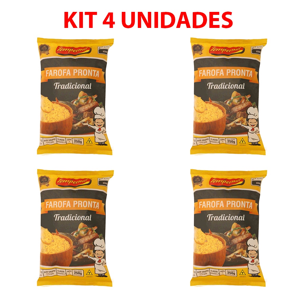 Kit 4 Farofa de Mandioca Temperada Tradicional Original 250g