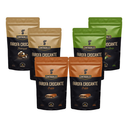 Kit 6 Farofa de Mandioca Temperada 250g 3 Sabores Delícia