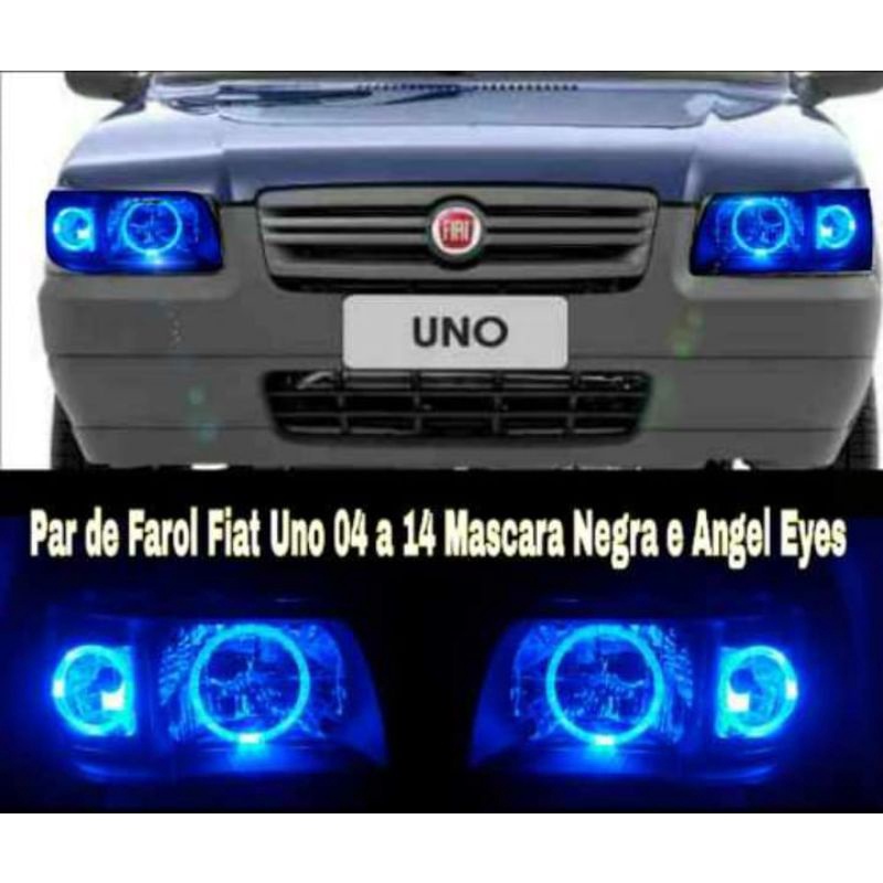 Par de Farol Fiat Uno 04/13 com Angel Eyes e Máscara Negra