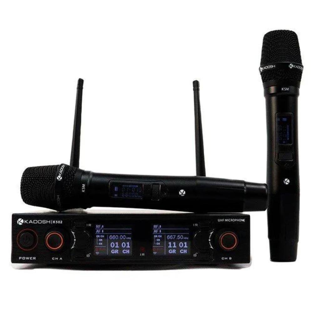 Microfone Duplo Sem Fio Kadosh K-502m Dinâmico Cardióide Uhf