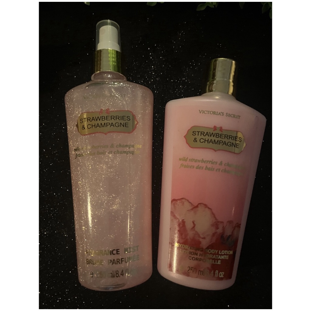 KIT REF. Victoria's Secret Shimmer Glitter CREME 250ML + BODY SPLASH SHIMMER 250ml Vanilla Love Strawberry Morango Coconut Pure