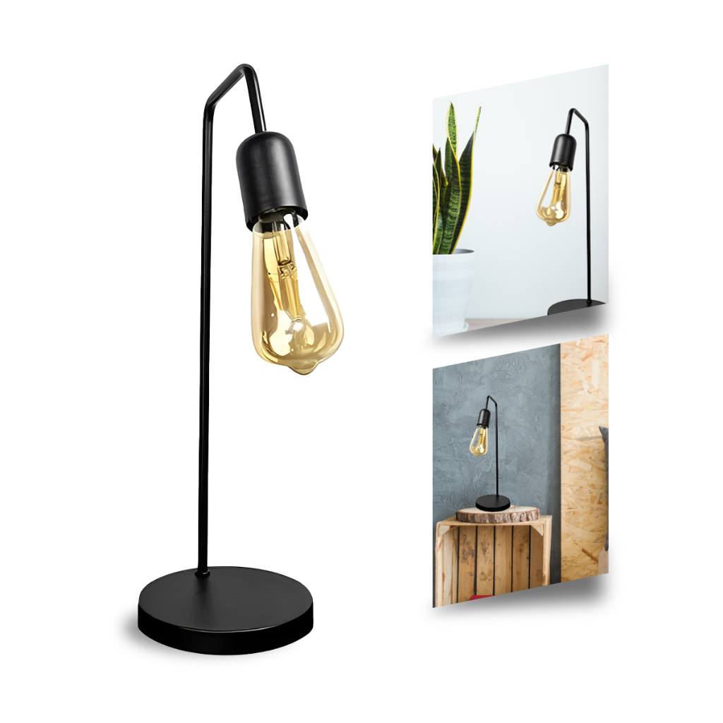 Abajur Luminaria De Mesa Quarto E-27 Retrô Vintage Industrial Quadrado Formato L