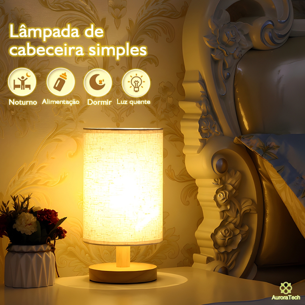 Abajur Retrô De Madeira Para Quarto E Sala Luminária de mesa com Cúpula de algodão vintage.