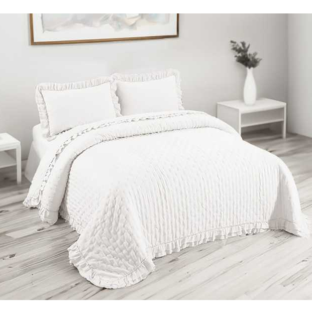 Kit Cobre Leito Casal Padrão 3pçs Colcha Bordada Com Babado Matelada c Linha 2,45x2,50 Cama Box Várias Estampas Sortidas