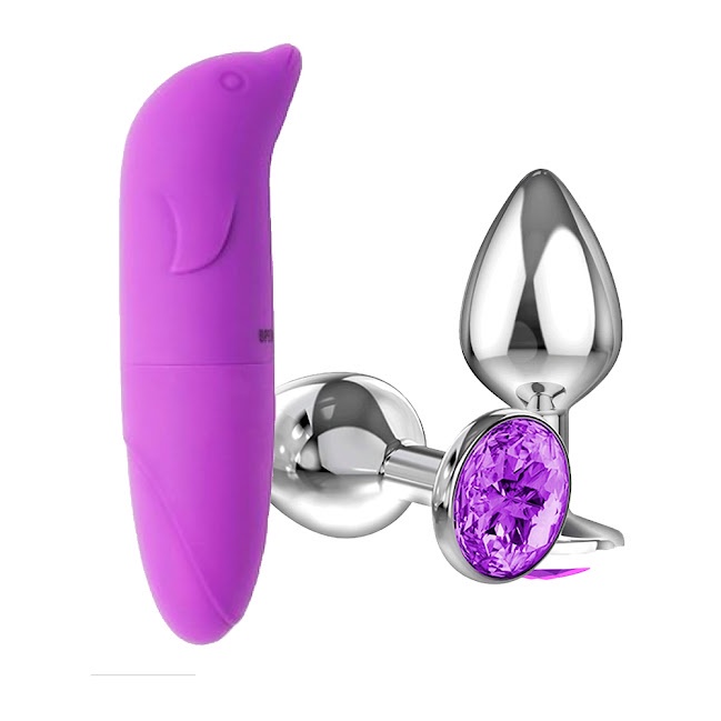Kit 2 em 1 Plug Anal Joia Aço + Vibrador Ponto G Kit Promocional Sexy Sex Shop