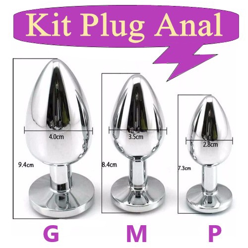 Plug Anal em Aço inox Polido com Detalhe de Joia na Base P M G Kit bdsm produto sex shop