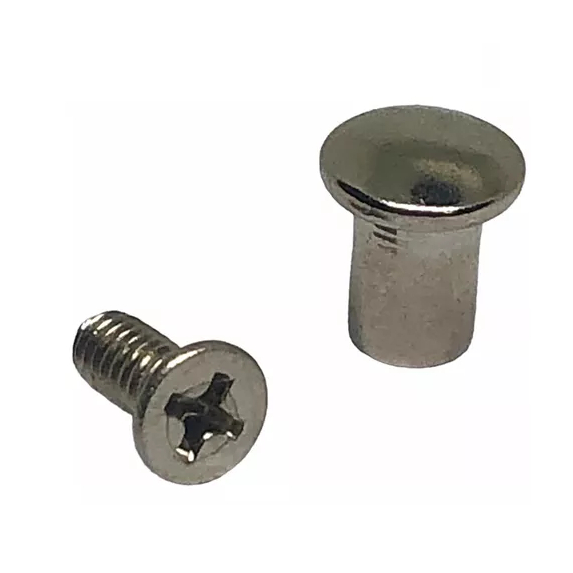 10 Pçs Rebite De Latão Cromo Com Rosca interna c/ Parafuso Philips de Inox