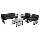 Conjunto Sofá para Área Externa Melo Fibra Sintética Sofá 2 Lugares 2 Poltronas e 1 Mesa Centro - Tecido Saquarema