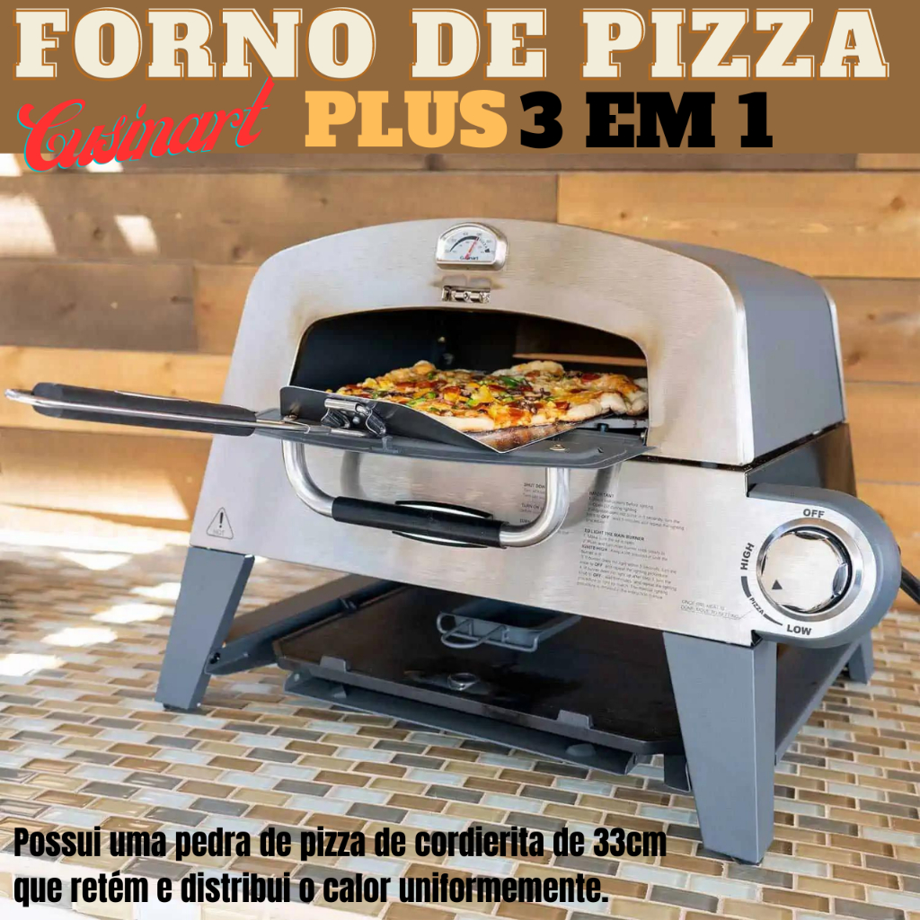 Forno de Pizza a Gás 3 em 1 em Inox Cuisinart - Forno De Pizza | Churrasqueira | Chapa