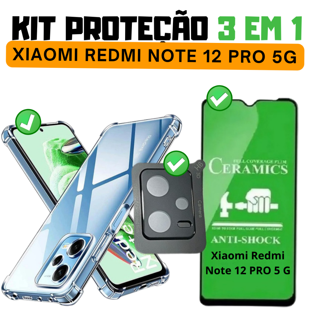 Combo Xiaomi Redmi Note 12 Pro 5G Capinha Ultra proteção + Película De Vidro 9D Tela Toda + Película Para Câmera