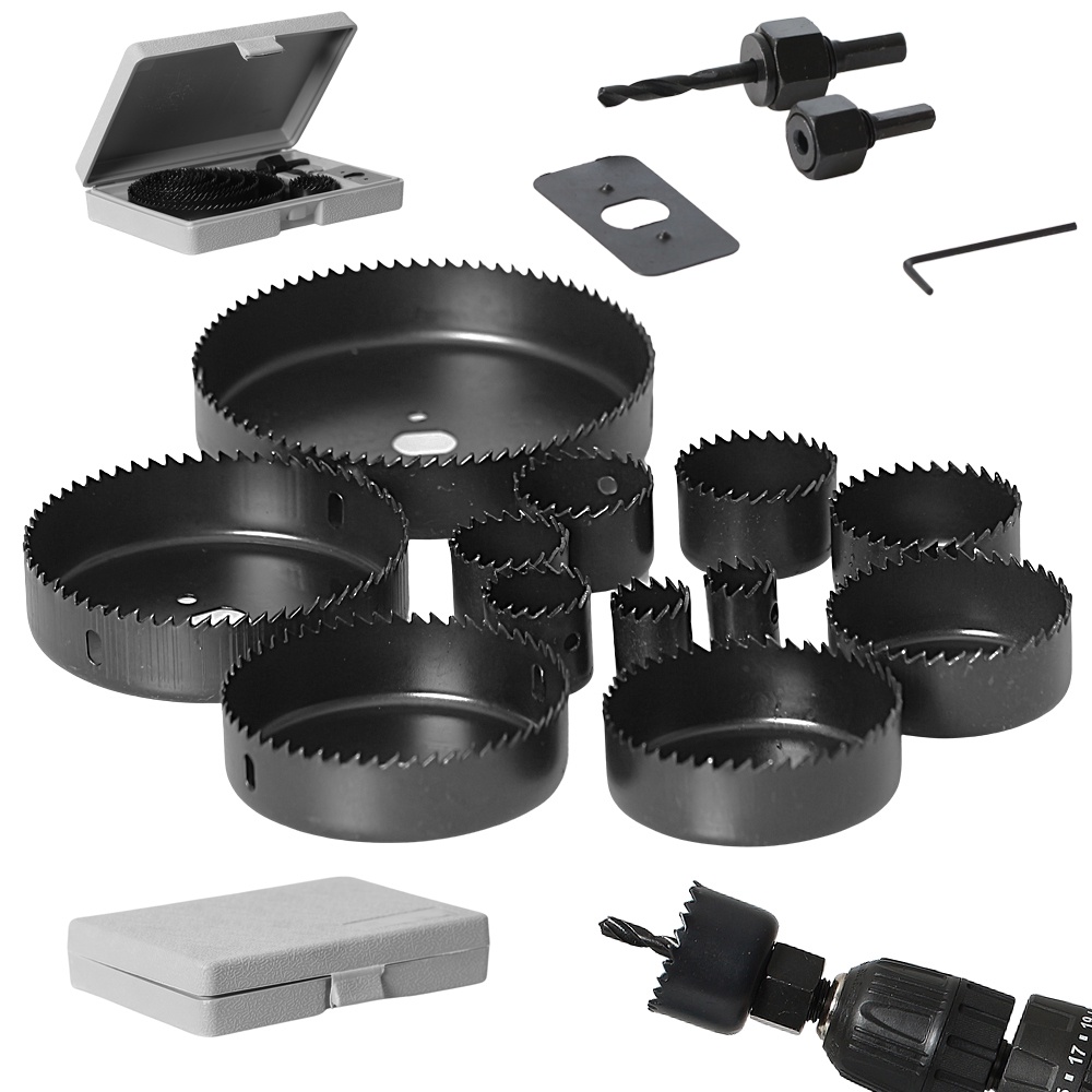Kit Jogo Serra Copo para Madeira de 16 Peças 19 á 127mm Gesso Plástico PVC Marceneiro Profissional