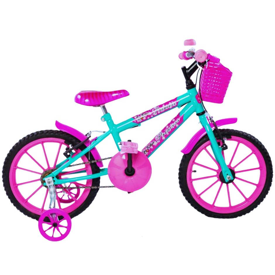 Bicicleta Aro 16 Infantil Feminina Princesa Retro C/ Cestinha Rodinhas De Treinamento