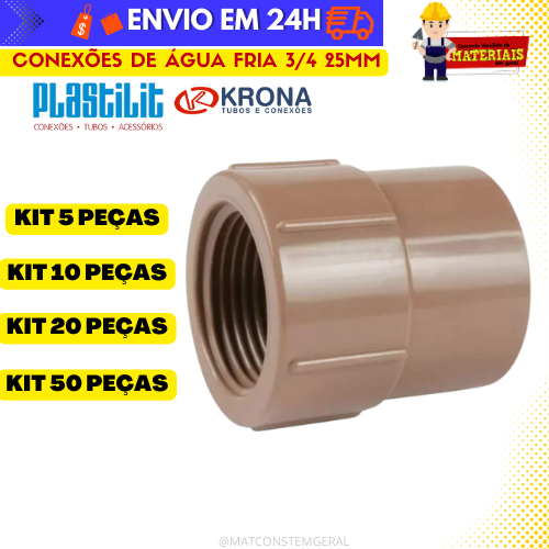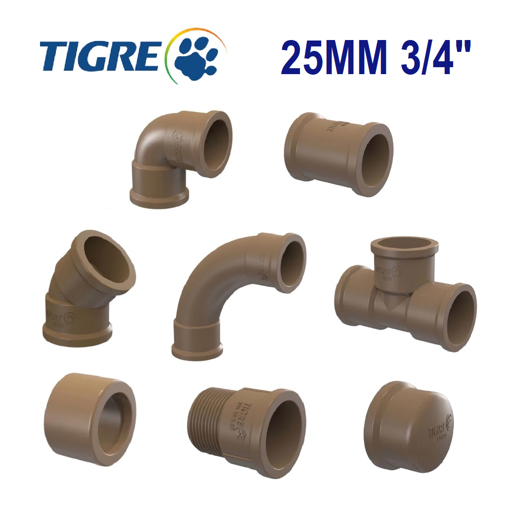 Conexoes 3/4" 25mm Tigre Para Cano Agua Pvc Marrom - Cotovelo, Joelho, Tampão, Luva, Te, Curva Longa, Bucha Reduçao.