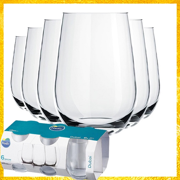 Jogo Kit De Copos De Vidro Com 6 peças 480ml - Dubai Nadir Para Água Drinks Refrigerante