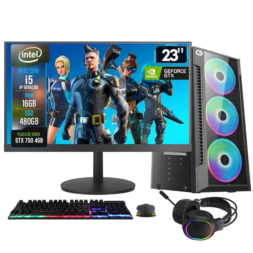 PC Gamer Completo 2eletro Shot, Intel Core I5, 16gb Ram, Geforce Gtx 4gb, SSD 480GB, Fonte 500w, Monitor 23" 75hz Full Hd - Pg2e-0104sh
