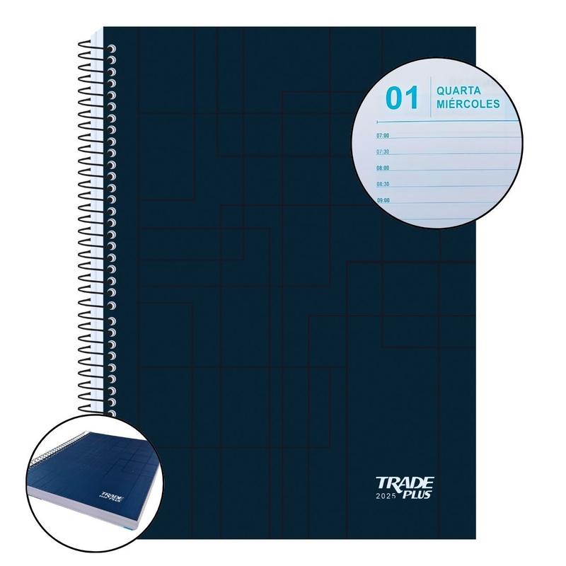 Agenda Profissional 2025 Espiral Grande Trade Plus Diária Folha Inteira Capa Dura 196 Folhas Executiva para Escritórios