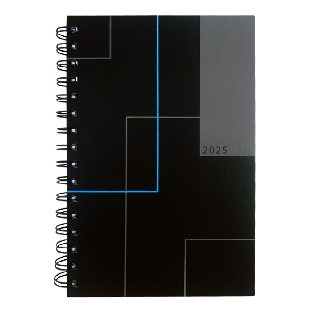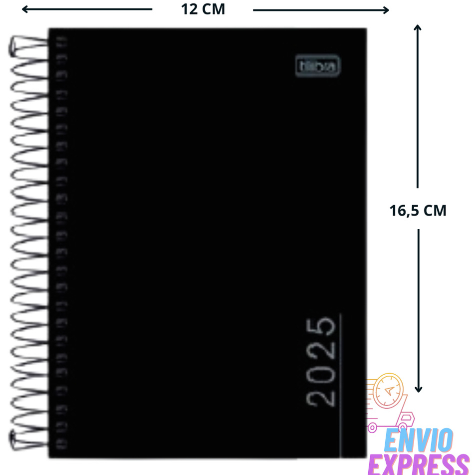 Agenda Diaria Espiral Preta 2025 A5 Grande Executiva