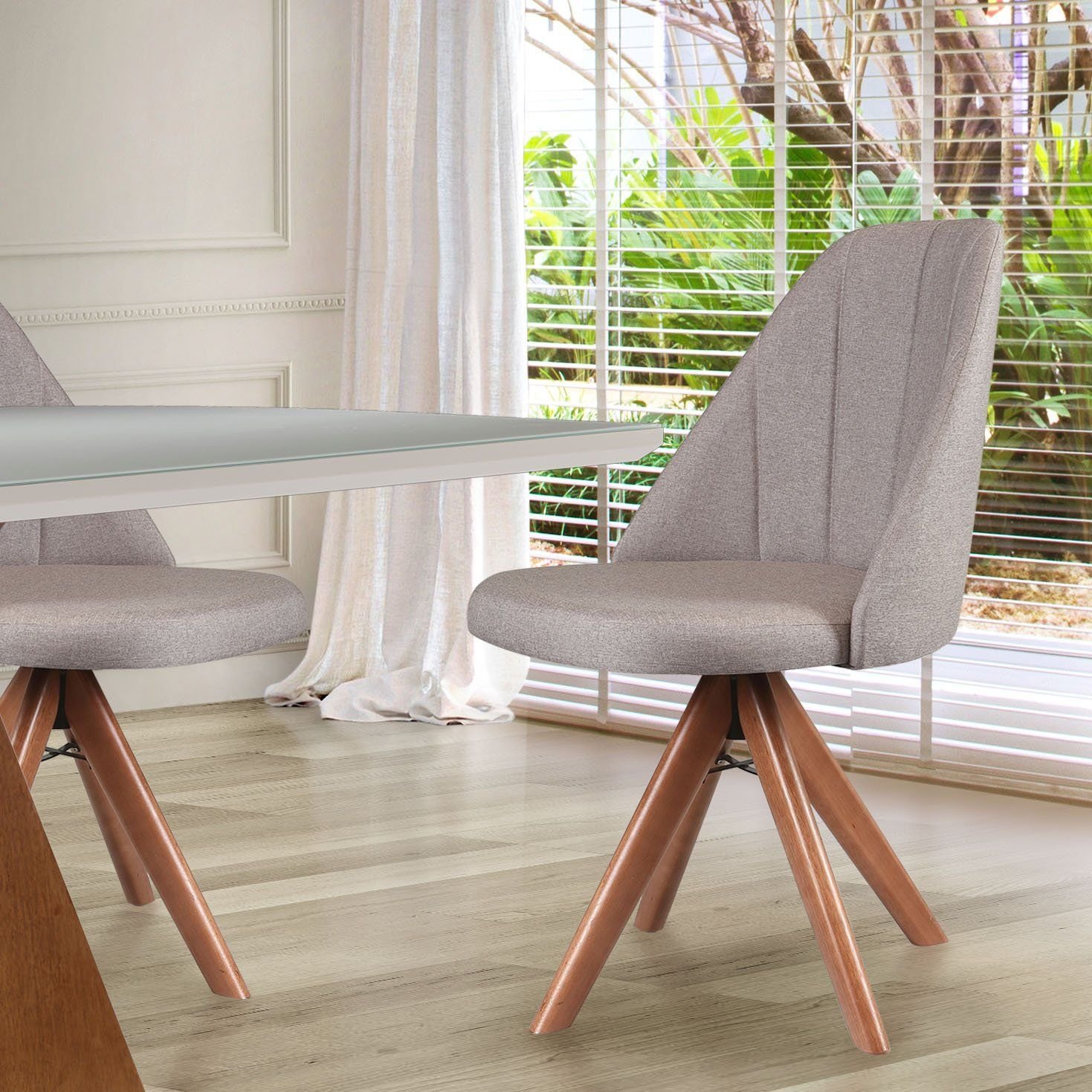 Cadeira de Jantar em Madeira Mariana Estofada GIratória Com Tecido Linho Para Sala de Jantar e Cozinha