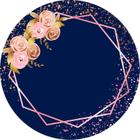 Painel De Festa Redondo 1,50x1,50 - Geométrico Flores Efeito Glitter Fundo Azul 004