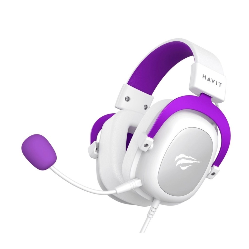 Fone De Ouvido Headset Gamer Havit H2002d Branco e Roxo Com Cancelamento de Ruído Pc, Ps4, Xbox One, Ipad e Computador Portátil.