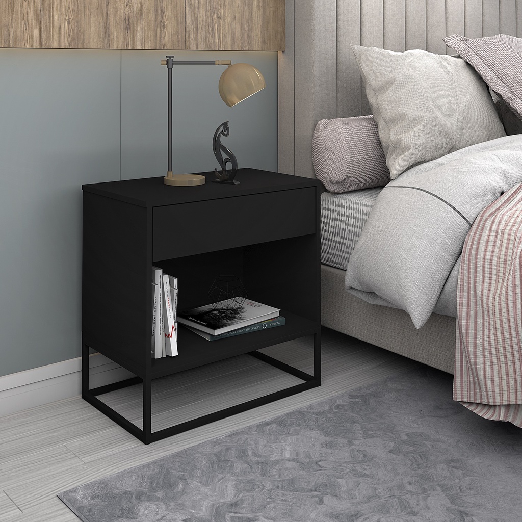 Mesa De Cabeceira Malta Preto Pés em Ferro Estilo Industrial