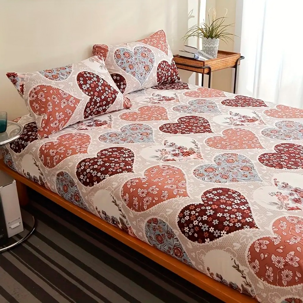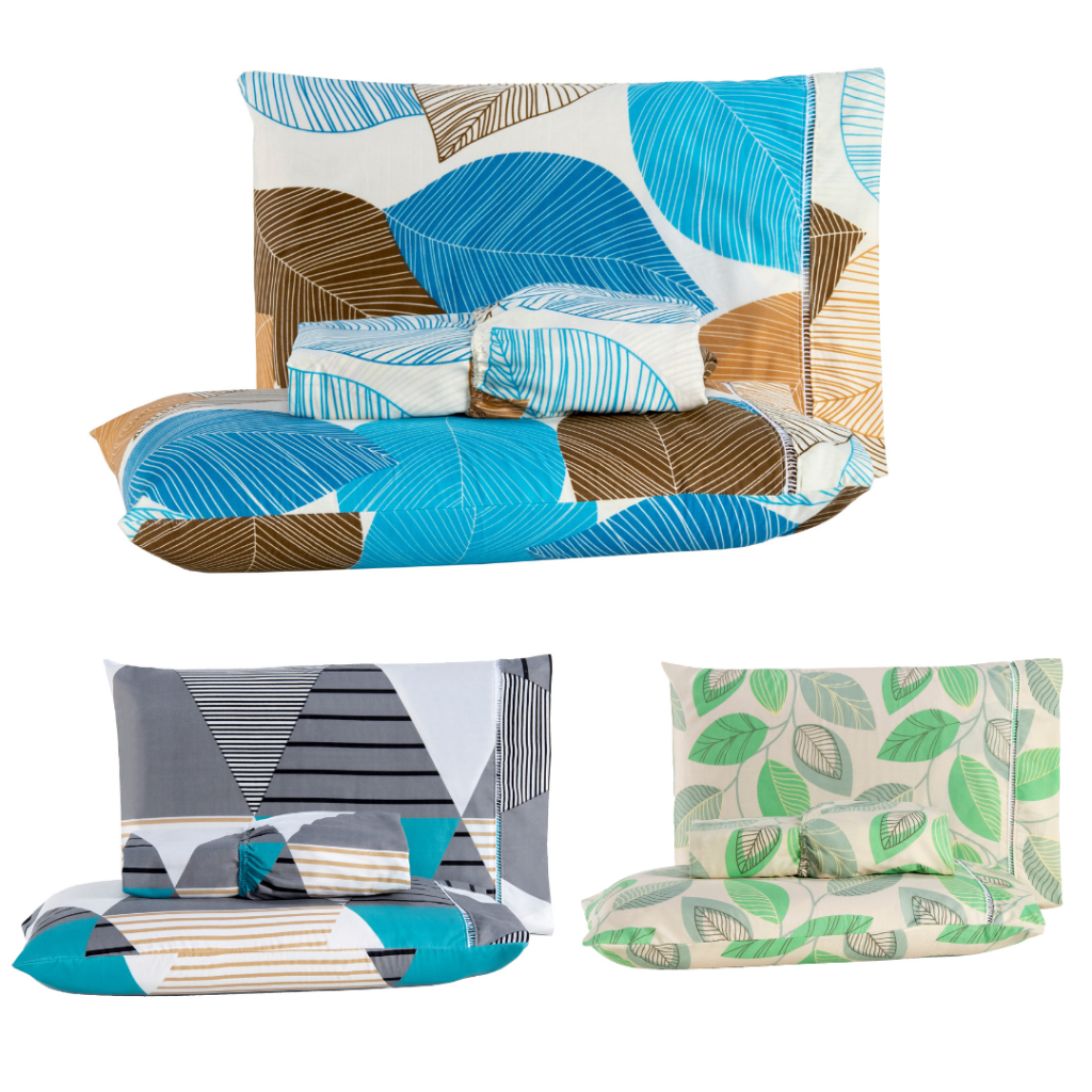Kit Lencol Casal Queen 03 Peças Tecido Macio 400 Fios Percal Estampado